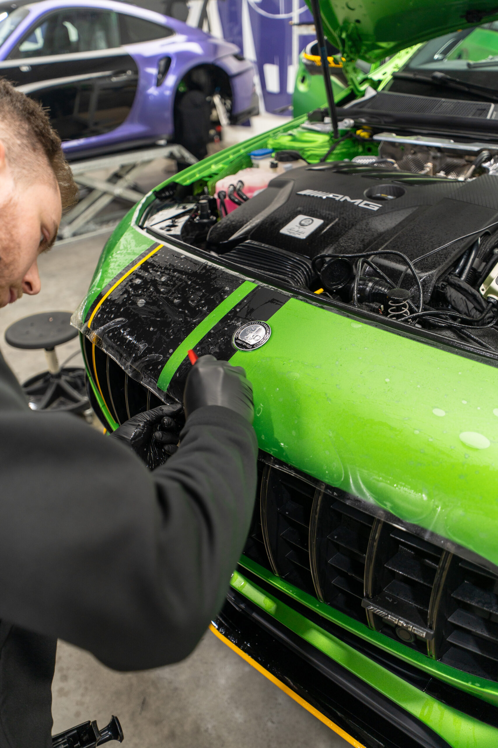 Eine Mercedes-Folierung stellt höchste Ansprüche an Folierer, da jedes Modell seine eigenen Besonderheiten mitbringt. Die kantige G-Klasse verlangt präzises Arbeiten an markanten Linien und äußerst exponierten Stellen, während die elegante S-Klasse mit ihren aufwendigen Rundungen und empfindlichen Lacken höchste Sorgfalt verlangt. Bei der AMG Black Series liegt der Fokus auf aerodynamischen Elementen wie Spoilern und Diffusoren, die millimetergenau foliert werden müssen. Der exklusive AMG ONE wiederum stellt durch seine komplexe Karosserieform und Carbon-Elemente die Königsdisziplin dar – bei WRAPSIGN haben wir bereits vier AMG ONEs erfolgreich foliert. Wir sind Spezialisten für die Autofolierung mit Erfahrung und Know-how – wir stehen für kompromisslose Qualität und Premium-Folierungen, die Ihren Mercedes bis ins kleinste Detail veredeln.